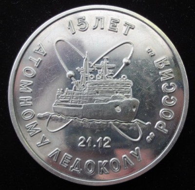 Признаться, с удивлением обнаружил, что "Нерпа" выпускала помимо знаков и медали к юбилеям атомоходов - две "Арктики", "Ямал", а теперь увидал ещё и "Россию", причём, в алюминии.