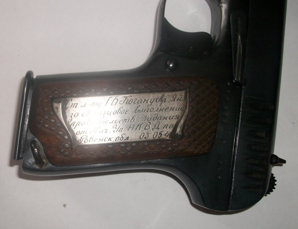 От него и есть :hi: От раннего, со щечками еще на винтах (как на Вашем фото). С пистолетом выдавалось свидетельство: