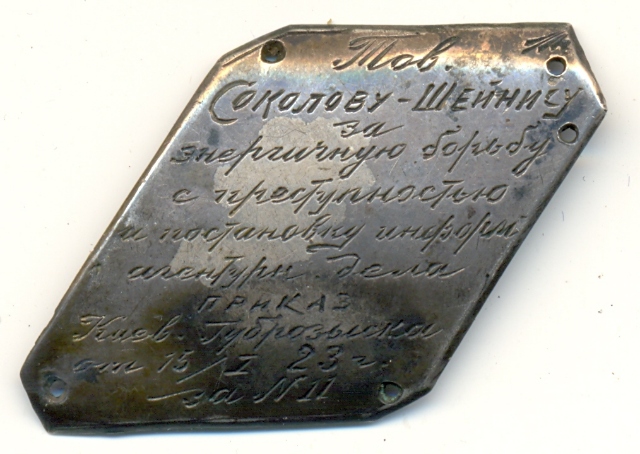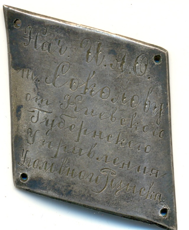 Вот зачем ставить клейма пробирной палаты на серебряную наградную табличку? Ну поставили бы на обратную сторону, если уж так хотелось…