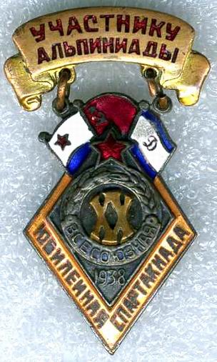 Впервые такой знак (нижнюю его часть) я увидел у М.А.Азарха. Действительно, в 1938 в ознаменование 20-летия РККА и ВМФ, а также 15-летия общ-ва "Динамо" проводилась грандиозная спартакиада, и знак был под стать этому событию. Верхняя часть "Участнику альпиниады", возможно, более позднего происхождения, судя по металлу. Азарх привел фото этого значка в своей статье в Спутнике коллекционера, кажется, 1976 г. В любом случае, знак прекрасный.bigshatun писал(а) :Альпиниада в честь XX-летия РККА. Проводилась на Кавказе. 220 красных командиров прошли в горах от Нальчика в Сванетию, а затем совершили восхождение на западную и восточную вершины Эльбруса.