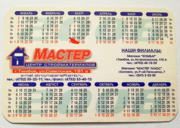 Re: Календарики на тему "ТОРГОВЛЯ".