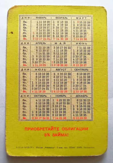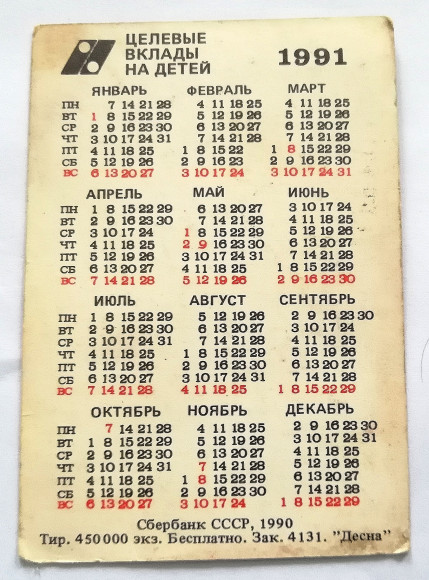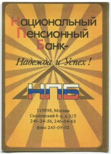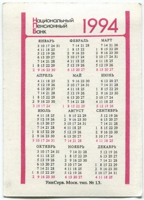 Карманный календарик "Национальный Пенсионный Банк. 1994 г."