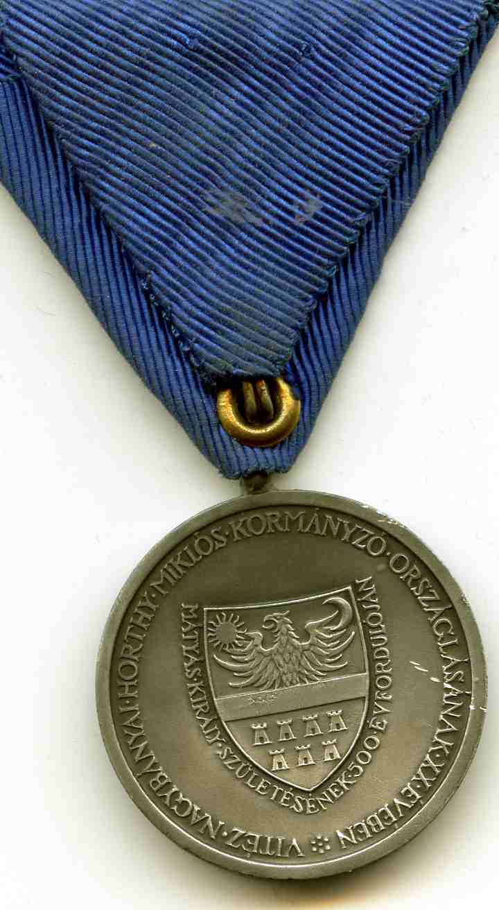 На реверсе – герб Трансильвании по краю которого надпись на венгерском «MÁTYÁS KIRALY SZÜLETÉSÉNEK 500 ÉVFORDULÓJ AN» "(король 500-летие своего Матияш возрождения ) и надписью вокруг обода ВITEZ NAGYBÁNYAI HORTHY МIКLОS KORMÁNYZÓ ORSÁGLÁSÁNAK XX ÉVÉBEN" (в 22-м годом в регентства Миклоша Хорти де На́дьбанья храброго) .