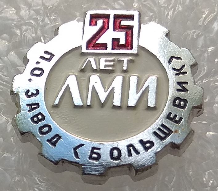 Значок "25 лет ЛМИ - П.О. завод "Большевик".