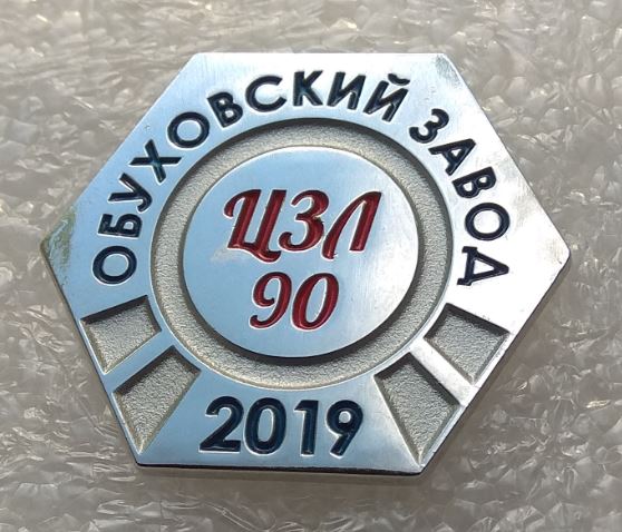 Значок "Обуховский завод - 90 лет ЦЗЛ 2019".