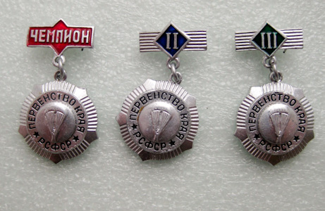 Верно. Отсюда и вопрос. Почему на медали отсутствуют все данные о прыжке?Anatoliy писал(а) :Насколько я знаю, в парашютном спорте рекорды очень разнообразны: одни связаны с высотой прыжка, другие - со временем суток, третьи - с прыжками на точность, четвертые - со временем нахождения в воздухе без раскрытия парашюта и т.д. и т.п. Соответственно, разнятся и тексты на медалях.