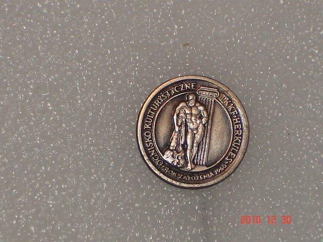 в Варшаве по весне ежегодно проводили соревнования по культуризму "Геркулес", (организация для того времени очень хорошая - аккредитация на оборудовании "Поляроид" (сама карточка как наградной знак), телевидение, журналисты, но в кинотеатре) у меня есть "золотые" и медаль и значок "Геркулес 89", они чуть-чуть другие, но узнаваемы. Вероятно организаторы выпускают новый вид либо к каждому году, либо как "расстреляют" последний тираж. Интересно на фото знак какого года?тяжеловес писал(а) Пн, 11 янв 2010 08:26:14: ↑Красивый знак!zurk писал(а) :Вообще-то это не медаль,а знак (бронза)-диаметр-2 см.тяжеловес писал(а) :