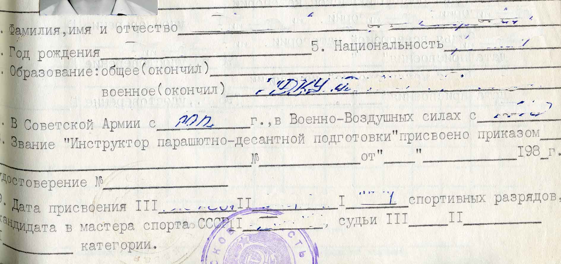 Но вернемся к виду спорта парашютизм - насколько я себе представляю для этого вида спорта нужен управляемый парашют (соревнования), в армии на сколько мне известно в основном используется не управляемый(купол) и в армии свои знаки парашютист-спортсмен...значит прямоугольный знак по парашютизму человек мог получить или до армии или после армии причем в обоих этих вариантах в структуре ДОСААФ...