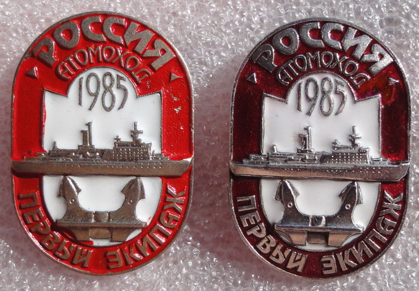 Признаться, с удивлением обнаружил, что "Нерпа" выпускала помимо знаков и медали к юбилеям атомоходов - две "Арктики", "Ямал", а теперь увидал ещё и "Россию", причём, в алюминии.