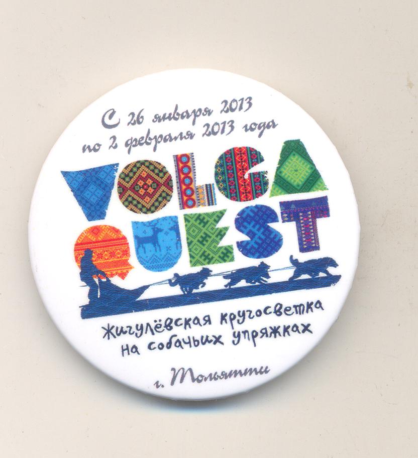 Собачья упряжка на знаке Полярная почта. Латунь, синтетическая смола. цанга, 30 мм х 30 мм.
