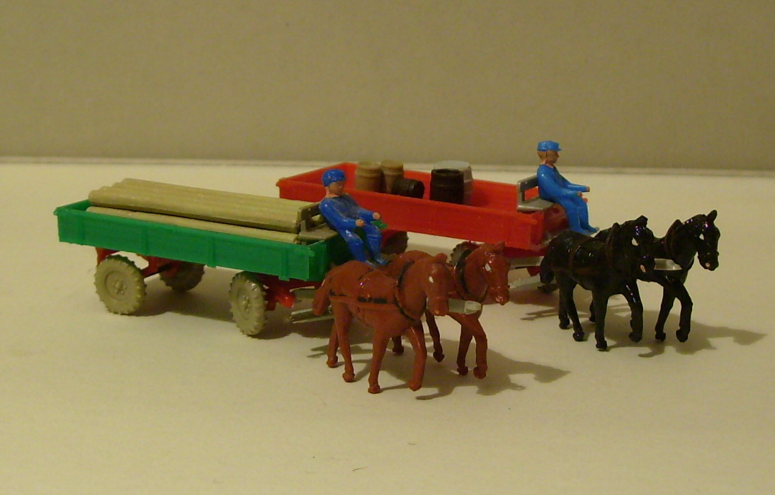 На сколько мне известно, разноцветные лошадки в одной повозке не запрягались. Возможно, это кто-то из коллекционеров произвел замену ввиду утраты одной лошадки. ИМХОдвое нас писал(а) :Модель в отличном состоянии, не похожа на восстановленную. Вопрос - возможны ли разноцветные лошади у телеги фирмы KURT HAUFE и когда это выпускалось? Знаю - пара черных, пара гнедых, пара белых (вживую не видел), но вот черный и коричневый в одной упряжке! Или перед закрытием фирмы (когда?) собирали остатки?