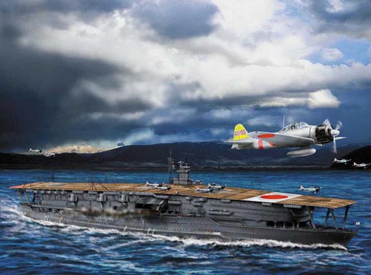 1927 г - начало эры авианосцев США, в строй вступает первый авианосец "САРАТОГА". В 1941 г - первая в истории крупномасштабная боевая операция с использованием авианосцев. Японские ВМФ атаковали базу ВМФ США Перл-Харбор. К счастью все три американские авианосца отсутствовали на базе и не пострадали. А затем...командование ВМФ США приходит к выводу, что залогом победы в войне с Японией станут не линейные корабли, а авианосцы и американские верфи переориентируются и начинают активное строительство авианесущих кораблей. Уже в 1942 г авианосцы США успешно атакуют японцев на Маршалловых островах, а затем американский бомбардировщик, взлетевший с палубы авианосца "Hornet", уже сбрасывает свой смертельный груз на Токио. И наконец, флоты Японии и США встречаются в Коралловом море. Впервые в истории, моряки во время сражения не видят друг друга. Атаки ведутся только самолётами, базирующихся на авианосцах. Битва у Атолла Мидуэй явилась поворотным моментом войны в Тихом океане.