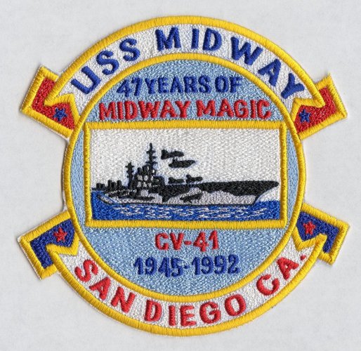 USS "MIDWAY CV-41" - тяжёлый авианосец ВМФ США (головной корабль типа "МИДУЭЙ"). Вошёл в состав флота США в сентябре 1945 г. В период 1943-47 гг были построены три авианосца этого типа. В ранний послевоенный период они составляли основу авианосного флота США.Активно участвовал в ходе Вьетнамского конфликта. Принимал участие в операции "Буря в пустыне" (1991 г). Корабль в составе флота почти 40 лет, ставший историей и легендой. В апреле 1992 г выведен из состава ВМФ США и в 1998 г установлен у причала в Сан-Диего как корабль-музей. :ded: