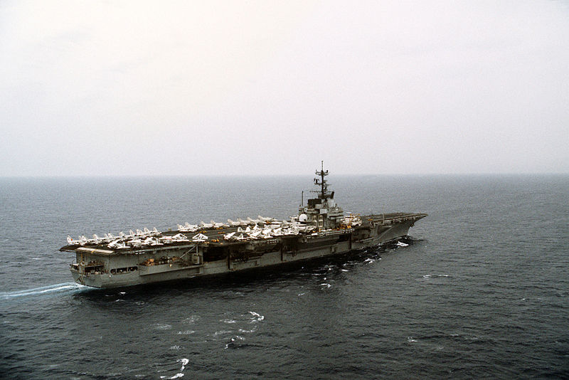 в августе 1990 г боевые дежурства в Индийском океане и участие в операции "Щит пустыни"; 1996 г - боевые дежурства у берегов Тайваня ( наблюдение за широкомасштабными учениями китайских ВМС), затем участие в учениях " РИМПАК" на Гавайях; в сентябре 1998 г закончился боевой путь корабля ( 30 сентября авианосец выведен из состава боевого флота США)