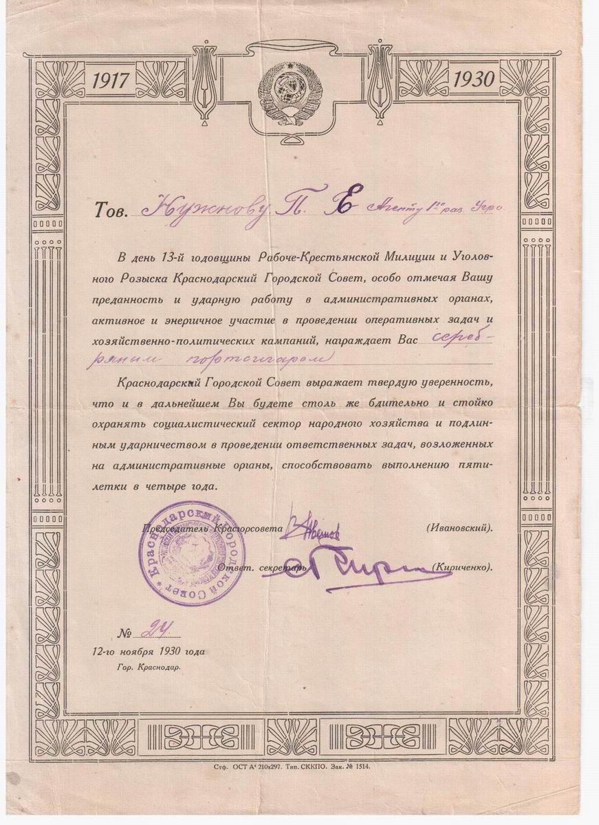 Коллега, не подскажете фамилию секретаря, похоже им заполнялись удостоверения заслуженных работников НКВД.Михаил-Киев писал(а) :заполнено каллиграфическим почерком секретаря центрального аппарата. Я даже фамилию его знал