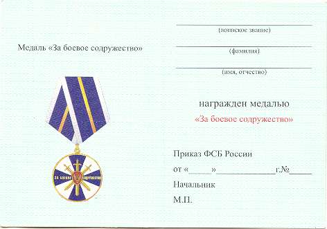 Медаль ФСБ России "За боевое содружество".