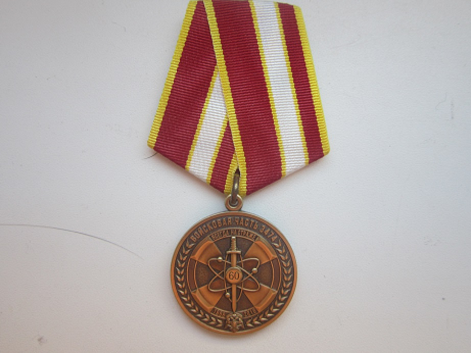 Нагрудный знак выполнен из алюминия в форме овала серебристого цвета размером 75 х 60 мм и состоит из трех частей: основания, накладки в виде геральдического знака – эмблемы войск национальной гвардии Российской Федерации и накладки с кодом знака.