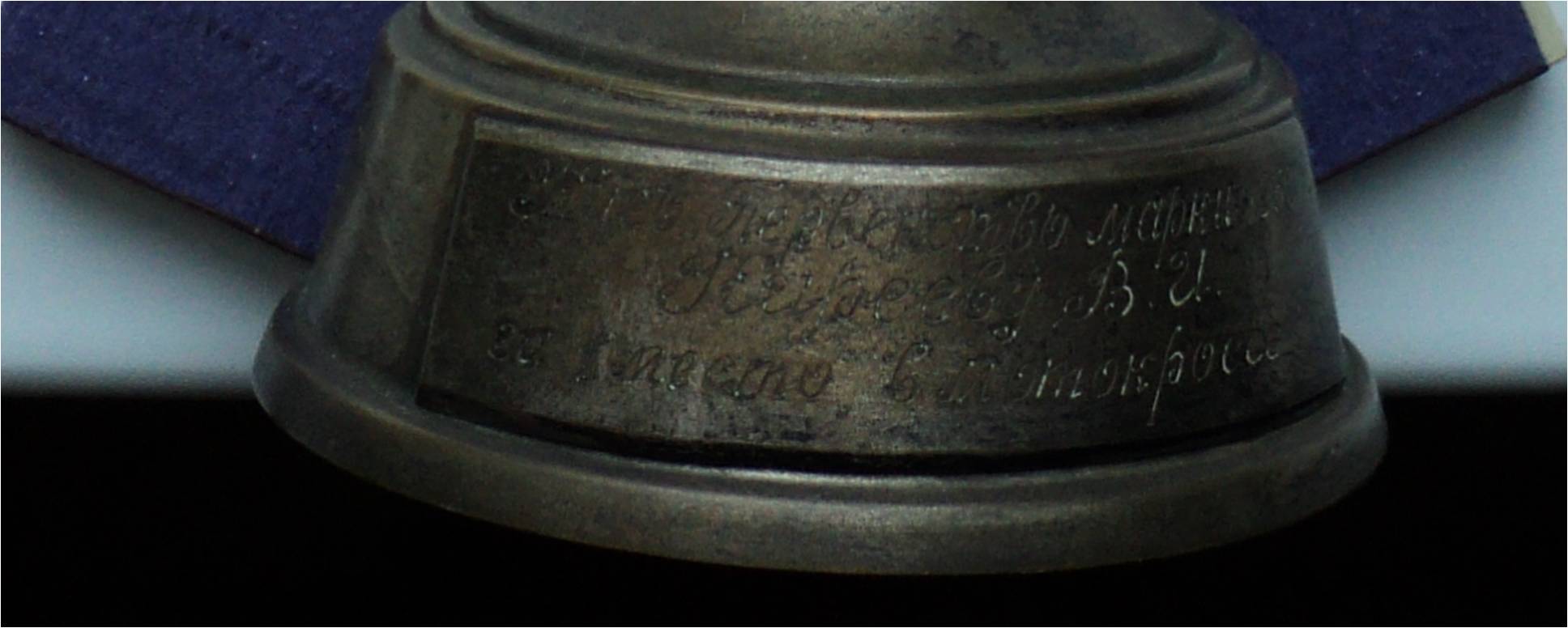 Второй кубок высотой 23см, основание 8см, крышка 8.5см, «штука» на крышке с эмблемой 3.5см высотой.