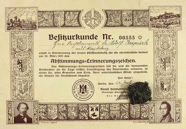 Такой вот простенький артефакт - по сути немецкая пропагандистская медаль к плебисциту в Силезии в 1921 году