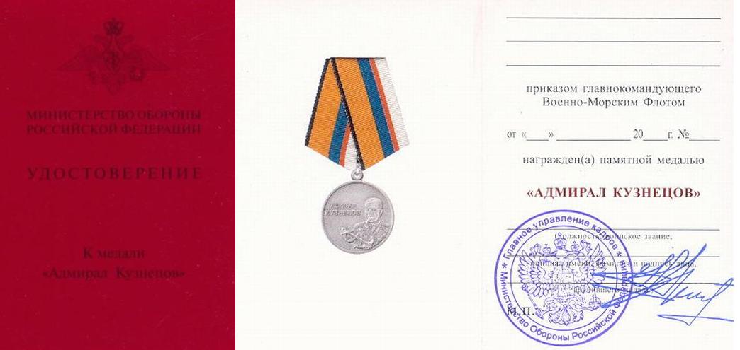 Медаль "Адмирал Кузнецов" --- Министерство Обороны РФ.