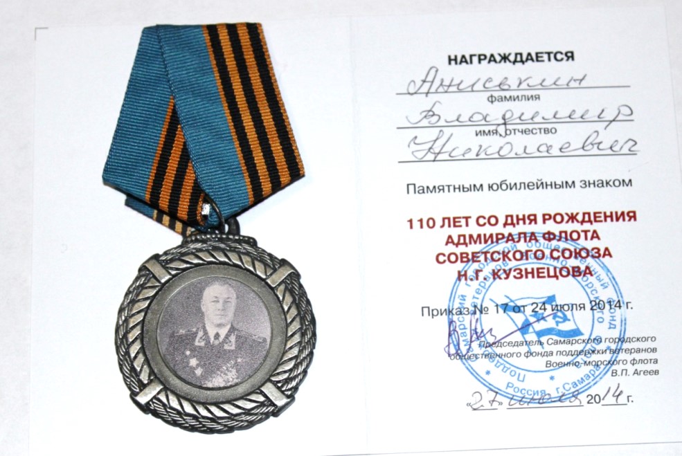 эмблема Военно-Морского Флота – неразрывную связь Н.Г.Кузнецова с Военно-Морским Флотом России;