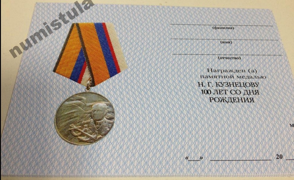 2. Памятный знак «Адмирал Флота Советского Союза Н.Г.Кузнецов» учреждён в ознаменование 110-й годовщины рождения Героя Советского Союза, Адмирала Флота Советского Союза Николая Герасимовича Кузнецова решением от 2014 года