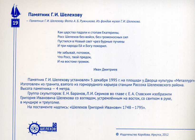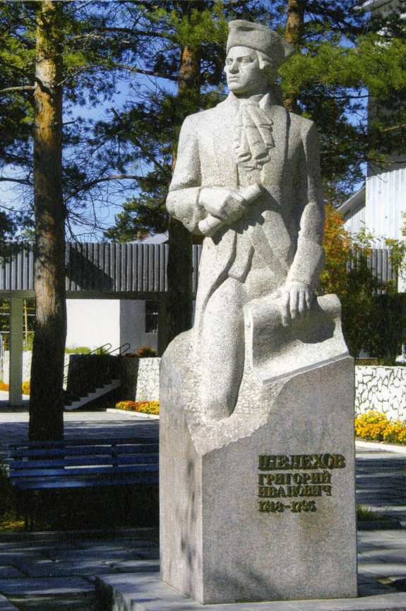 “КОЛУМБ РОССИЙСКИЙ” - Григорий Иванович Шелехов (Шелихов). Григорий Иванович Шелехов (1747 - 1795) уроженец города Рыльска Курской области. Мореплаватель, первым из русских купцов осознал необходимость создания крупных, экономически сильных компаний, которые могли бы открывать новые земли. Под его руководством была совершена экспедиция к берегам Аляски, о чем поведал Шелехов в своих “Странствиях из Охотска к Американским берегам”. Начиная с 1775 года занимавшийся обустройством коммерческого торгового судоходства между Курильской и Алеутской островными грядами. В 1783—1786 годах возглавлял экспедицию в Русскую Америку, в ходе которой были основаны первые русские поселения в Северной Америке.