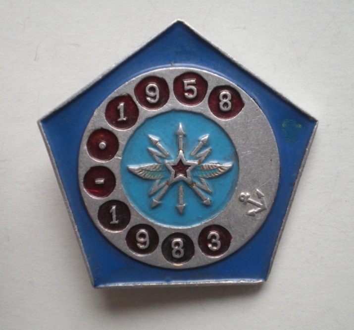 По моему мнению Ваш знак посвящён юбилею подразделения связи ВМФ, что и мой. Отсчёт начинается с 1959 года, у Вас 20 лет, а у меня 10 лет. Но, что за связь, мне так и не удалось выяснить. Прошу помощи у ветеранов. С уважением, Сергей.solomon писал(а) :чему 20 лет?