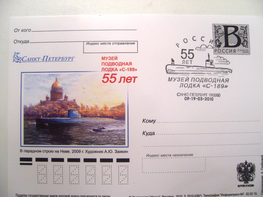 18 марта 2010 года прошло мероприятие по открытию частного музея «Подводная лодка С-189» по адресу: Санкт-Петербург, наб. Лейтенанта Шмидта, плав. Причал. В открытии музея приняли участие служившие на этой подводной лодке офицеры, мичманы, старшины и матросы. Подводная лодка была построена в послевоенный период и относится к проекту 613. Вошла в состав ВМФ 9 марта 1955 г. По этому проекту было построено 215 кораблей («Whiskey», по западной классификации). Прослужив почти 35 лет, в октябре 1990 г. она была расформирована и продана на металлолом. Лодку забросили, и она в 1998-1999 годах затонула у пирса из-за неисправности забортной арматуры и находилась в затопленном состоянии на грунте в Купеческой гавани Кронштадта.