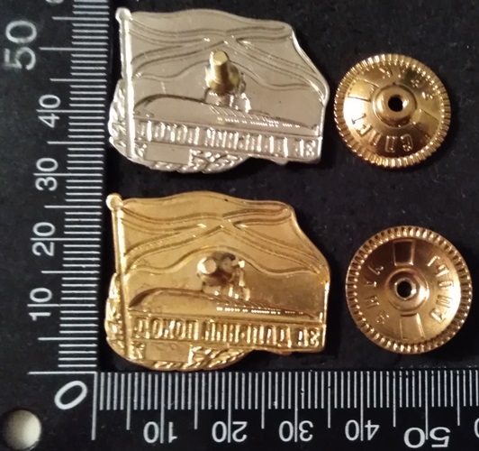 Этот знак шел после черной ПЛ (винт М 2,5, победовская гайка с клеймом, серебристого цвета), а после Вашего, шла ПЛ золотистого цвета на холодной эмали (винт М 3, победовская гайка с клеймом, золотистого цвета)
