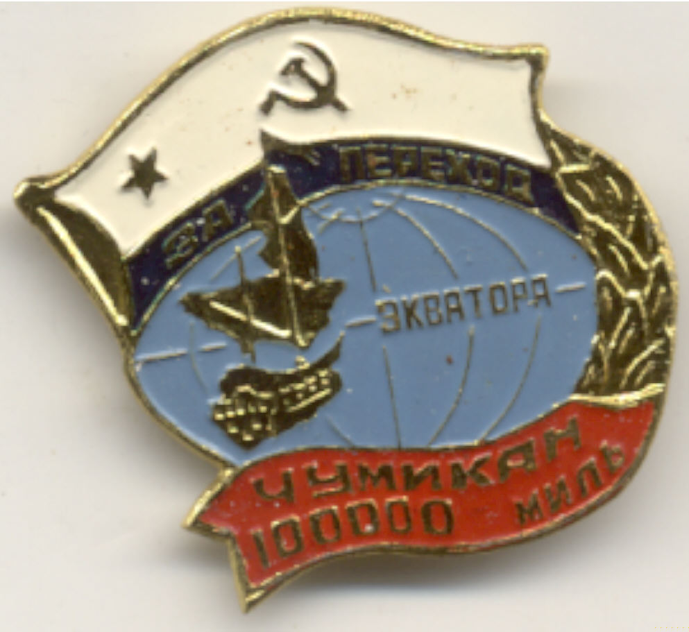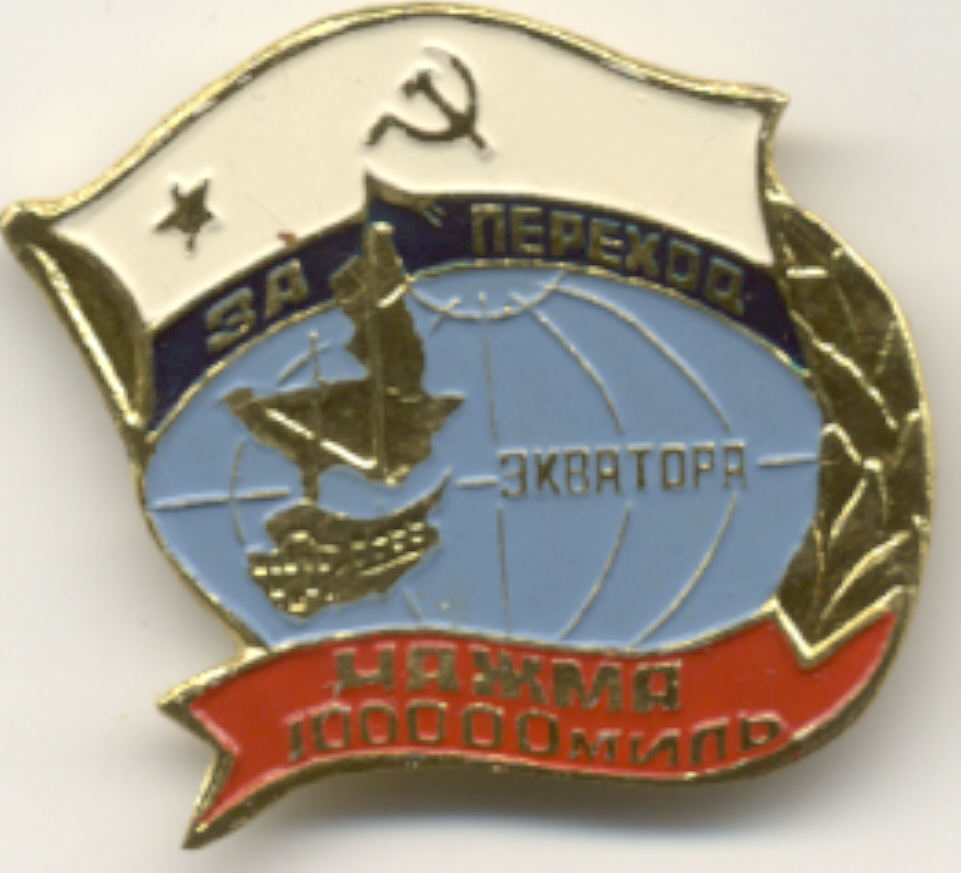 У моего знака под корпусом корабля тёмно-синяя эмаль ( знак на 2 стр. темы), ну а знак с накладкой, явно левый. Корабль в волнах со знака переход экватора.