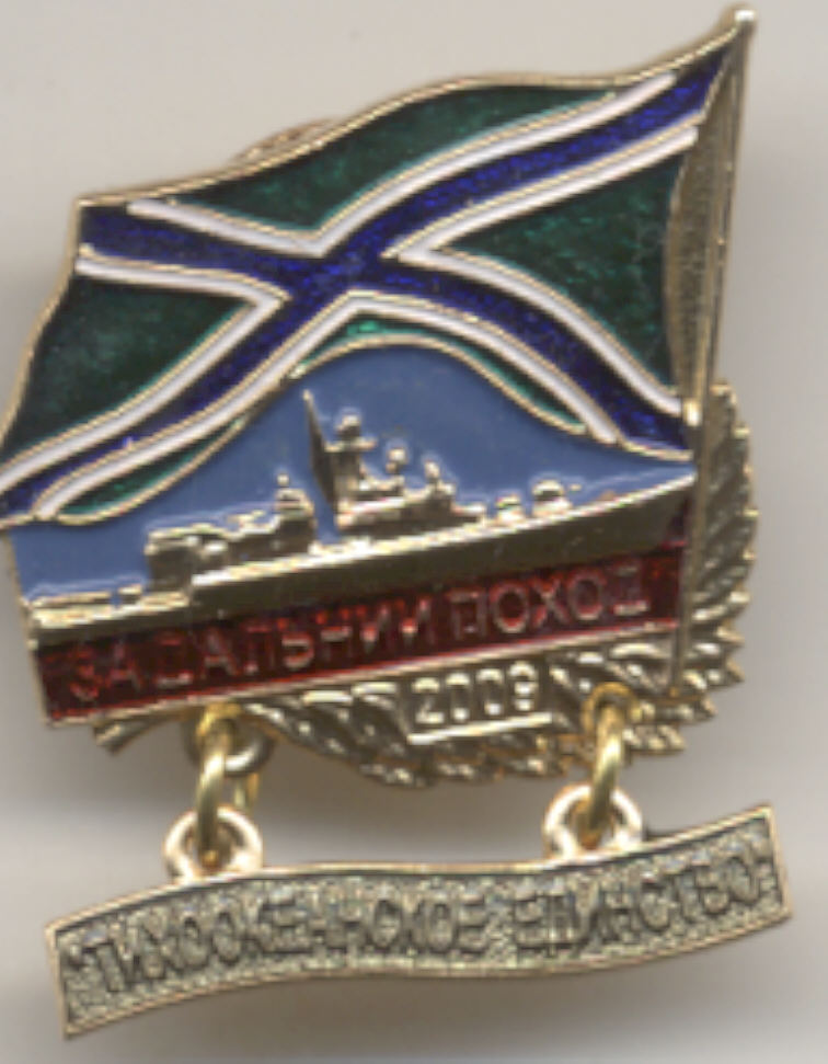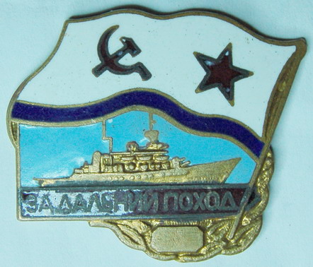 Делался он из двух знаков: обычного "За дальний поход" и знака "Крейсер Киев", из которого вырезалась надпись и силуэт корабля и вклеивались в расчищенную середину знака "За дальний поход". Все заливалось подкрашенной эпоксидкой.куинка писал(а) :Такой вроде не выставляли.