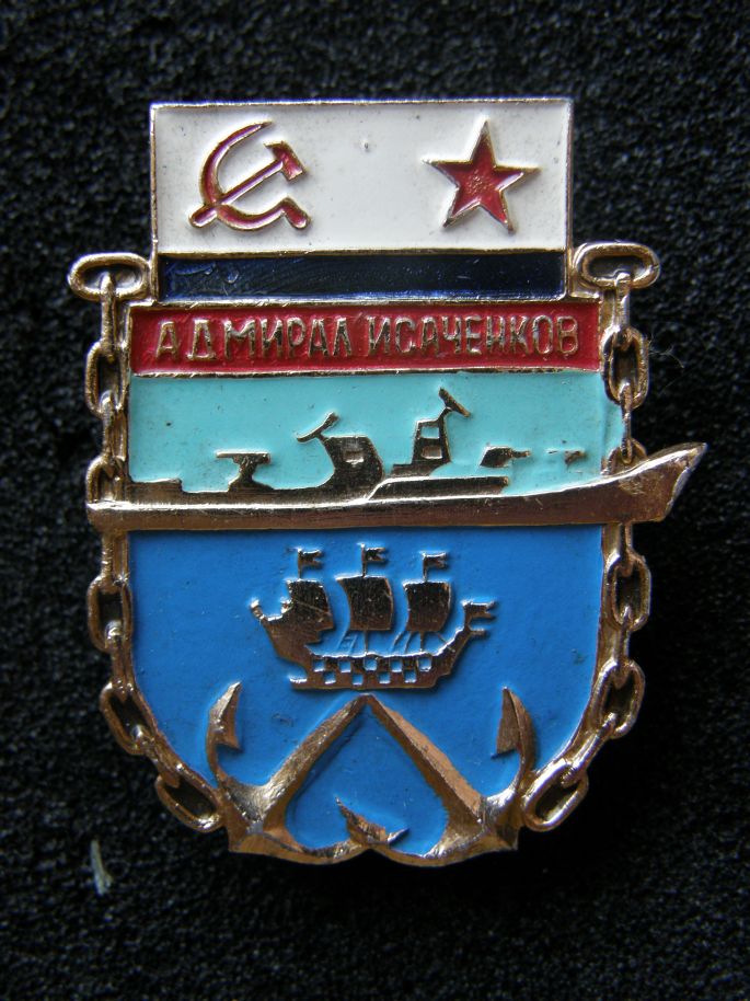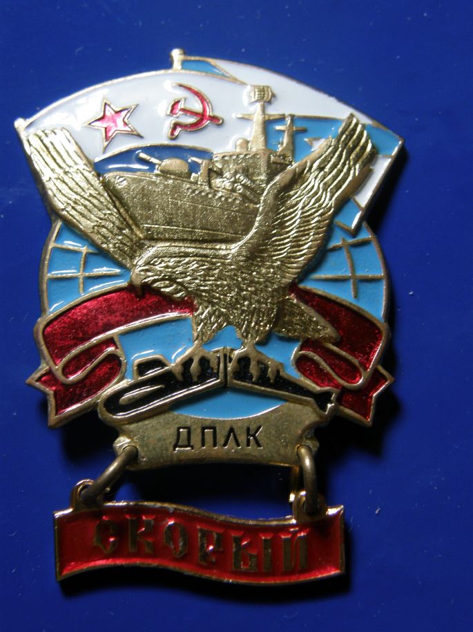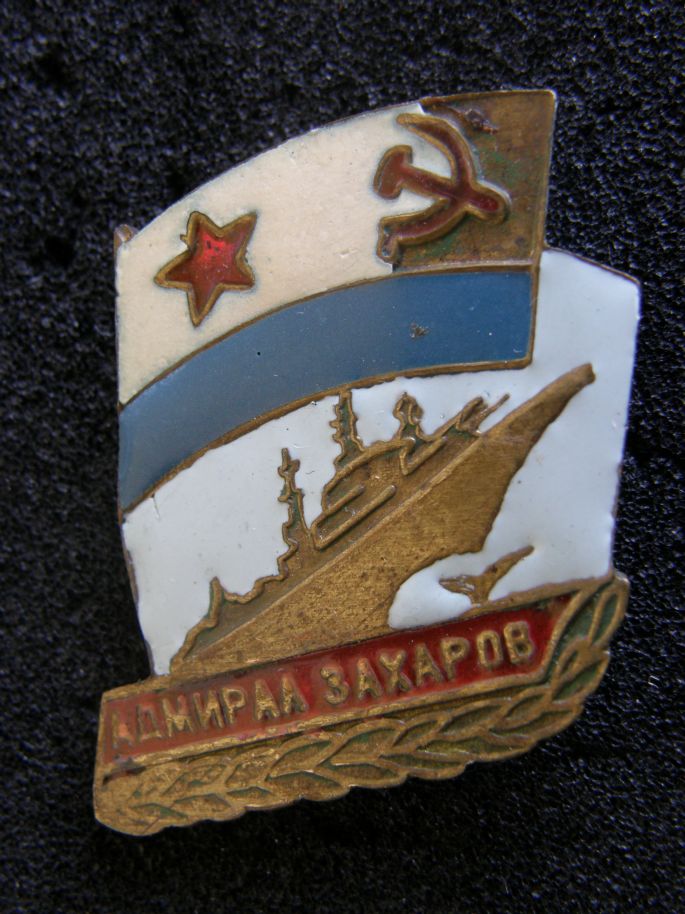 А вот, с Вашего позволения, оригинальный знак ( видимо, дембельское рукоделие), верой и правдой прослуживший около 9 лет на КТОФ и, невинно убиенный огненным смерчем в Уссурийском заливе 17.02.1991 г БПК "Адмирал Захаров" пр. 1155