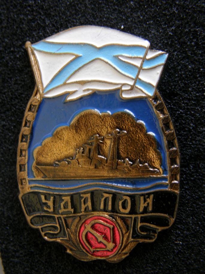Papa-vodolaz писал(а) :А вот, с Вашего позволения, оригинальный знак ( видимо, дембельское рукоделие), верой и правдой прослуживший около 9 лет на КТОФ и, невинно убиенный огненным смерчем в Уссурийском заливе 17.02.1991 г БПК "Адмирал Захаров" пр. 1155