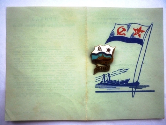 Размеры знака: с изображением надводного корабля: ширина - 77 мм,
