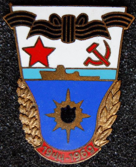 Это знак МПК-44 проекта 1124 (шифр "Альбатрос").Имя "Комсомолец Латвии" было присвоено 30.09.1983 г. Корабль нес службу в 109 ДПК 118 БК ОВР Лиепайской ВМБ Балт.флота.В 1993 году передан ВМС Литвы и переименован в "Zemaitis".Имя "Комсомолец Латвии" он получил от МТЩ пр.254,который до этого нес службу в 488 ДТЩ этой же бригады.Сечас по знаку. На знаке вместо накладного силуэта МПК прикреплен силуэт плавмастерской,что не соответствует оригиналу. Знаки (около 100 шт.) заказывались экипажем в Таллине.rechnik51 писал(а) :КОМСОМОЛЕЦ Латвии (не отч)