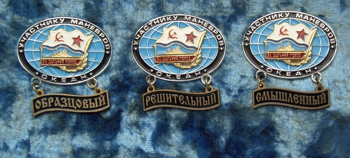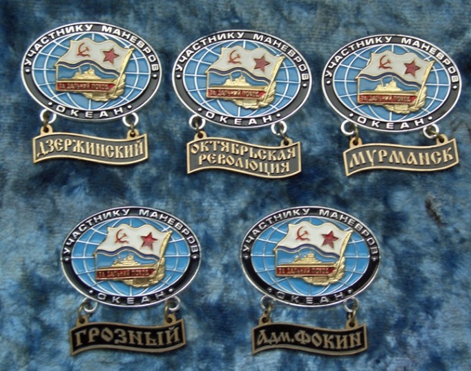 Леонид, а по каким критериям определяете участников учений? Все лишь корабли кот. фактически выходили в акваторию, а если какой-то БПК например лишь нес дежурство по ПВО у стенки, что с ним делать. А как быть со скромными торпедоловами, участвовавшими в учениях, но по причине не имения собственной в/ч ( как плавсредство) числились в том или ином соединении. И, как быть с участниками учений полками связи, узлами связи, узлами УКТК, полками РЭБ и др. .... береговыми людьми ?Думаю для автора серии надо было бы сделать и знак применително к вышеперечисленным наименованиям.... Такое чуство, что когда автор серии данных знаков начал свой проект, то он явно не представлял, что аж столько подвесок придется делать....