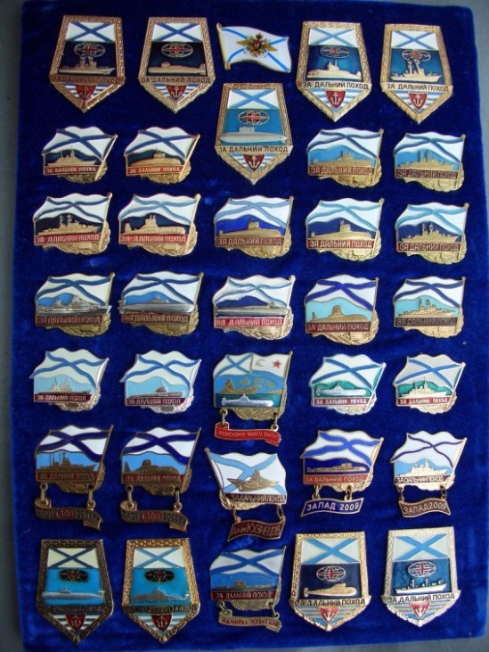 Leonid, B данном вашем посте вы выразили свое отношение. Мне так показалось, по поводу количества ....дцать.Пусть они себе собирают кто что желает. Только почему-то упор идет в значки-сувениры. А оффициалных знаков как было 6-7 так и осталось. И созданные гералдические советы на флотах и разные комиссии занимаются всем, но не данным вопросом.Как не было знаков ( например !!!) морской летчик ,знаки для проходящих службу на ПЛ и НК ( а не только командир ПЛ и НК), водолаз, специалист тылового обеспечения,специалист РЭБ ( для полков РЭБ) ,специалист вспомогательного флота, специалист-минер ( не за боевое траление награда которая должна быт как медаль,а не значок) водитель танка, морской парашютист,снайпер ( для МП) и.т.д. И значки "За Дальний Поход" из середины прошлого столетия,явно морально устарели.Сколько д/походов совершается на флотах сейчас??? А уж если ты попал служить на тральщики или РК, то тебе никогда не получить данный знак. Поэтому и множится сувенирная продукция. Так же и с нашивками.При значительно увелич. кол-ве флотских специалностей нашивок-штатов на флоте аж 7, их даже во время 2МВ было по более, а коммерческих на сотни уже исчисляются.Некоторым нашивкам с кораблей в количестве - даже флота позавидуют! Явные диспропорции. Но это все равно не доказуемо, т.к. флоты занимаются великими стратегическими проблемами такими как например офицера ГШ ВМФ заставить переехать из Москвы на новое место дислокации ГШ аж в Питер, и в повседневной запарке, и там глубоко пофигу вся эта значково-нашивочная возня.