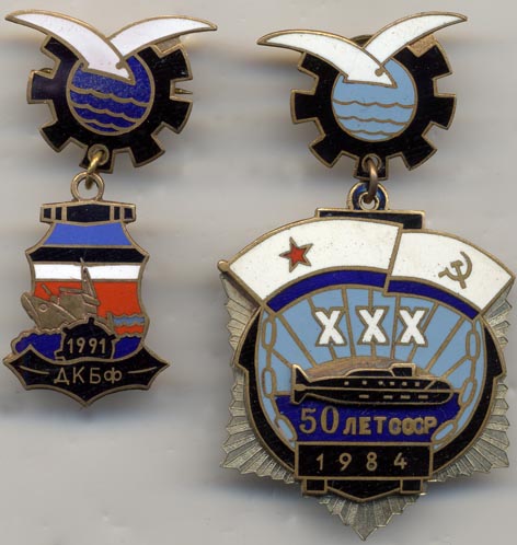 "Красный вымпел" - это корабль музей. Знак примерно конца 60-х начала 70-х. А "Томский комсомолец" это БДК пр.1171 в марте 1992 переименован в БДК-25.