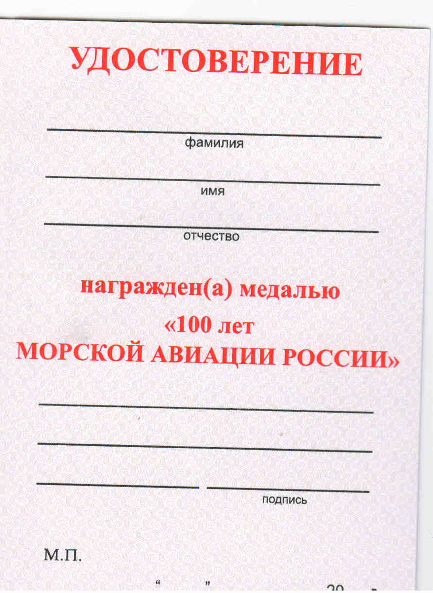 Комиссия по общественным медалям и памятным знакам учредила юбилейную общественную медаль «100 лет Морской авиации России».