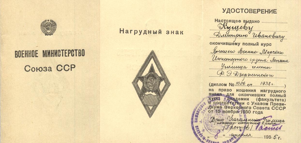 Документы к юбилейным медалям, за подписью:FELIKS писал(а) :Его удостоверение к знаку и свидетельство инструктора по спортуFELIKS писал(а) :ВВМИУ им. Дзержинского училище корабельной архитектуры 1798-1998