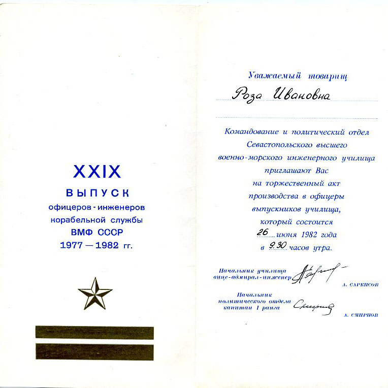 ВВМИОЛУ Пригласительный билет 1952 - 1958