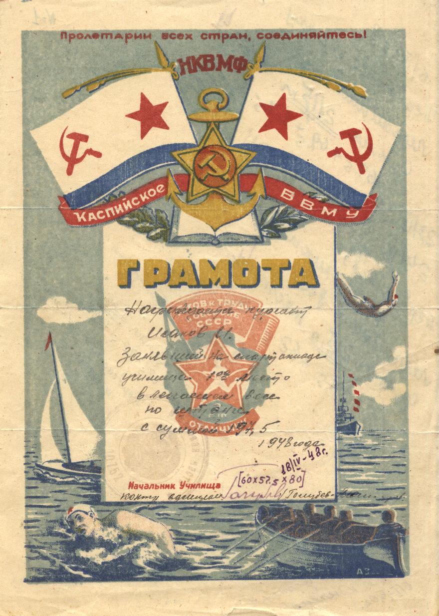 Грамота ВМУЗ ВМС, бланк 40-х годов, выдан в 1950м