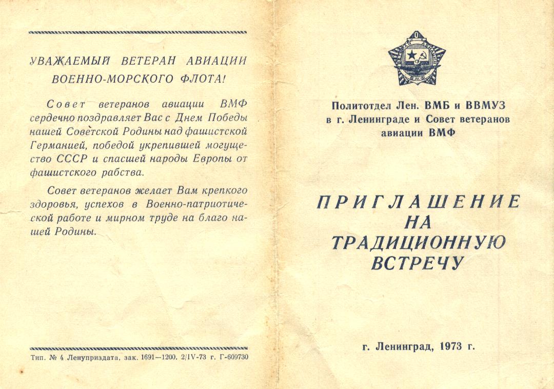 ЛМУ ВМФ 1963 - 1967 Пригласительный билет 18 выпуск