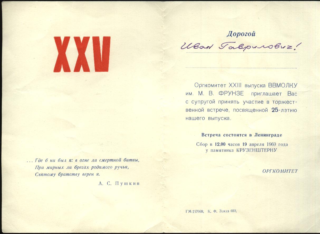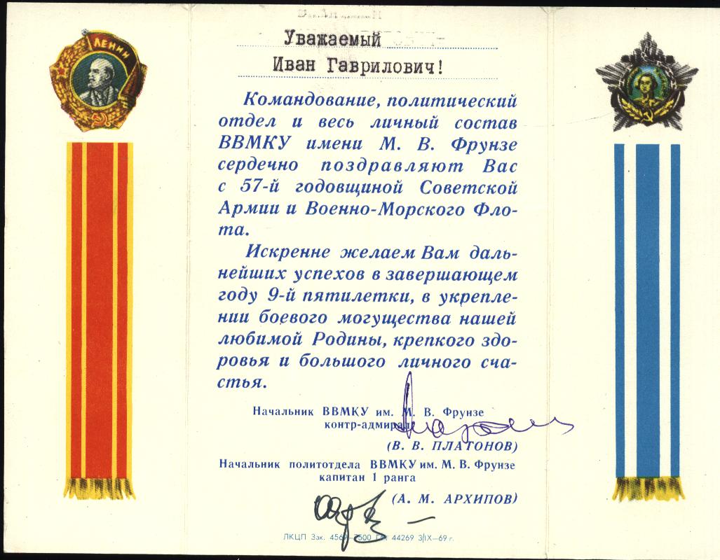 Выпускнику ВВМОЛКУ им.М.В.Фрунзе