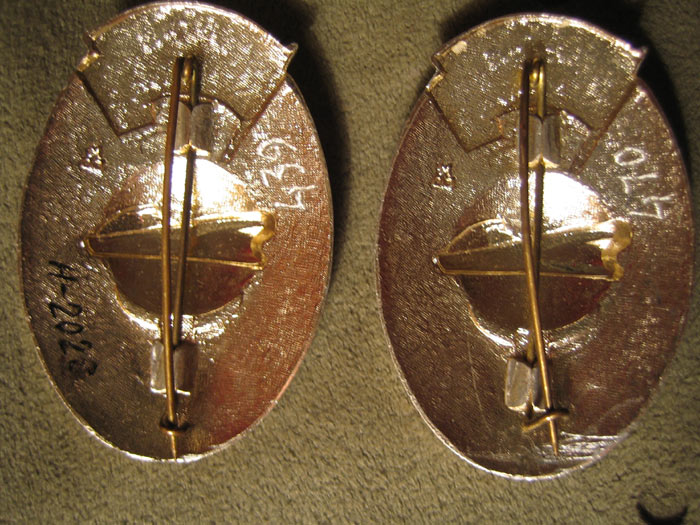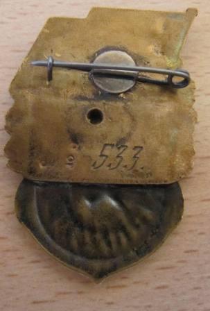 На обратной стороне знака имеется штифт с гайкой для крепления к одежде.