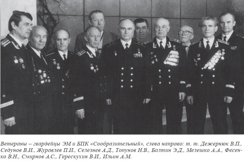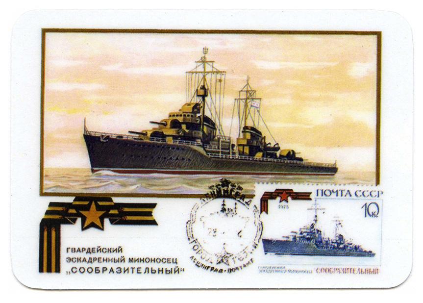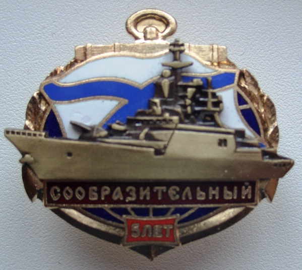 Мне в жизни удивительно повезло — я живу, увидев все три корабля с одним названием: эскадренный миноносец, большой противолодочный и, наконец, корвет. Все корабли гвардейского звания, все под одним именем — «Сообразительный». В апреле 1970г. вспоминая на страницах «Красной звезды» о подвиге эсминца «Сообразительный» первый заместитель Главкома ВМФ Герой Советского Союза адмирал флота Владимир Касатонов писал: «На нашем советском Военно-Морском флоте существует замечательная традиция: передавать имена героических кораблей по наследству. От старых — новым, от кораблей, которые уже завоевали себе бессмертие, кораблям, которые только начинают свой боевой путь. Более полувека под овеянным славой гвардейским флагом «Сообразительного» экипажи несли боевую вахту на море, овладевали искусством побеждать врага в годы Великой Отечественной войны, а в мирное время образцово выполняли задачи защиты интересов Родины на морских и океанских просторах, достойно представляя Флот Советского Союза в различных точках Мирового океана, демонстрируя при этом высокую морскую выучку, мужество, стойкость. А все началось с эскадренного миноносца проекта 7-у, новейшего корабля того времени, оснащённого самым современным вооружением, самой новой техникой.