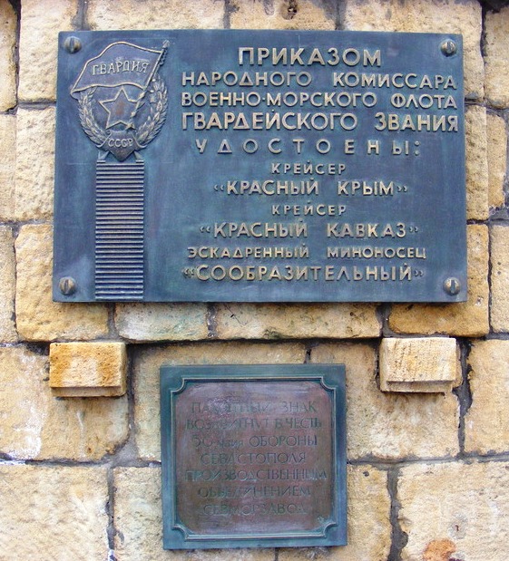 - Памятный знак воздвигнут в четь 50 летия обороны Севастополя, производственным объединением Севморзавод .