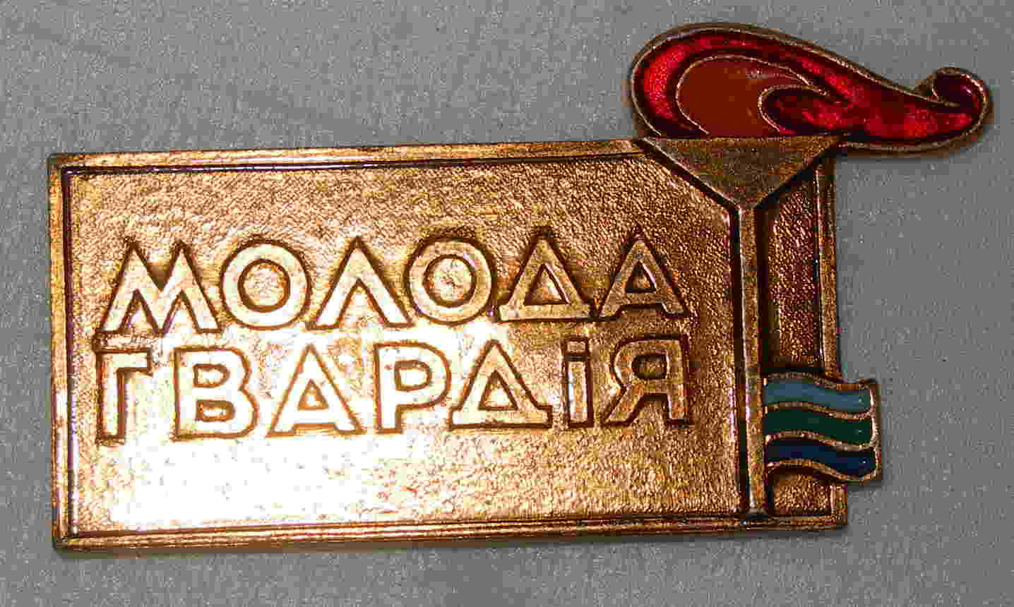AlexTver, всё может быть, но обычно это название на значках и именно с таким написанием, связывалось с пионерским лагерем ЦК ЛКСМ Украины "Молодая Гвардия". Может этот значок относится к жизни лагеря после развала СССР мне не понятен флаг на флагштоке?