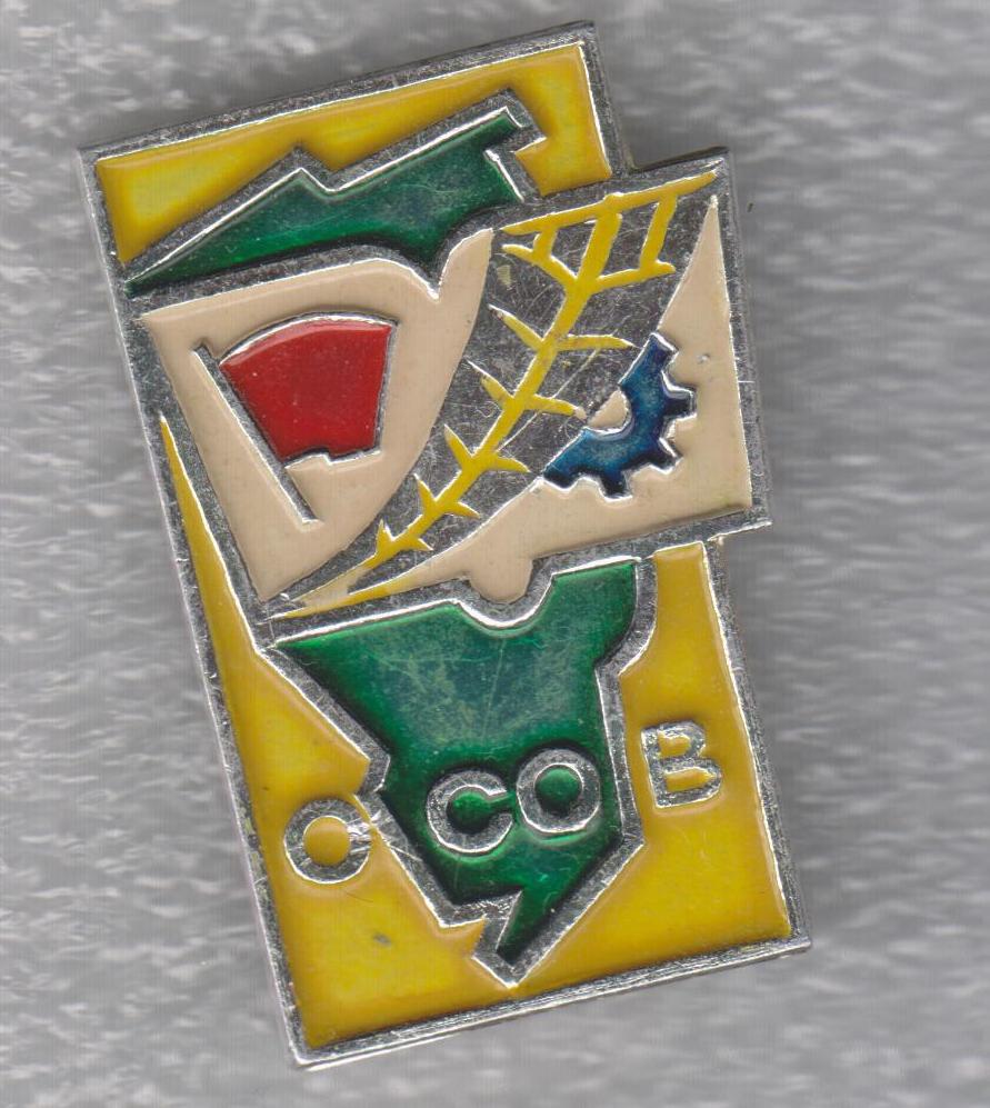 У меня стоит в отрядах (пока не пойму, или это ТОС, или УПБ, или ударный отряд). Это Кемеровская область. Расшифровывали мне как "Областной сельскохозяйственный отряд выпускников" (в смысле, выпускников школ). Вообще такие отряды известны, целое движение было, но сокращение ОСОВ только на одном значке, поэтому место сомнению остается